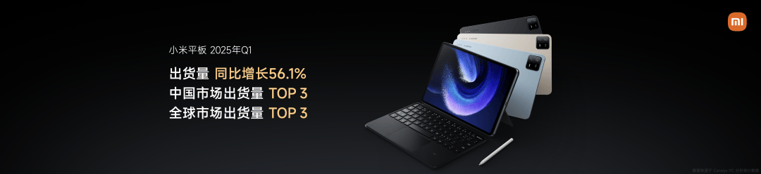 小米平板业务成长非常快,我们在 2025 年第一季度取得了史无前例的好成绩,全球出货量同比增长 56.1%,首次进入全球前三。