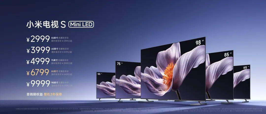 小米电视 S Mini LED 延续采用高端 Mini LED 显示技术,从 55 英寸到 98 英寸,分区数相比上一代都提高了 30% 到 40% 左右,控光更精准,画质更细腻。