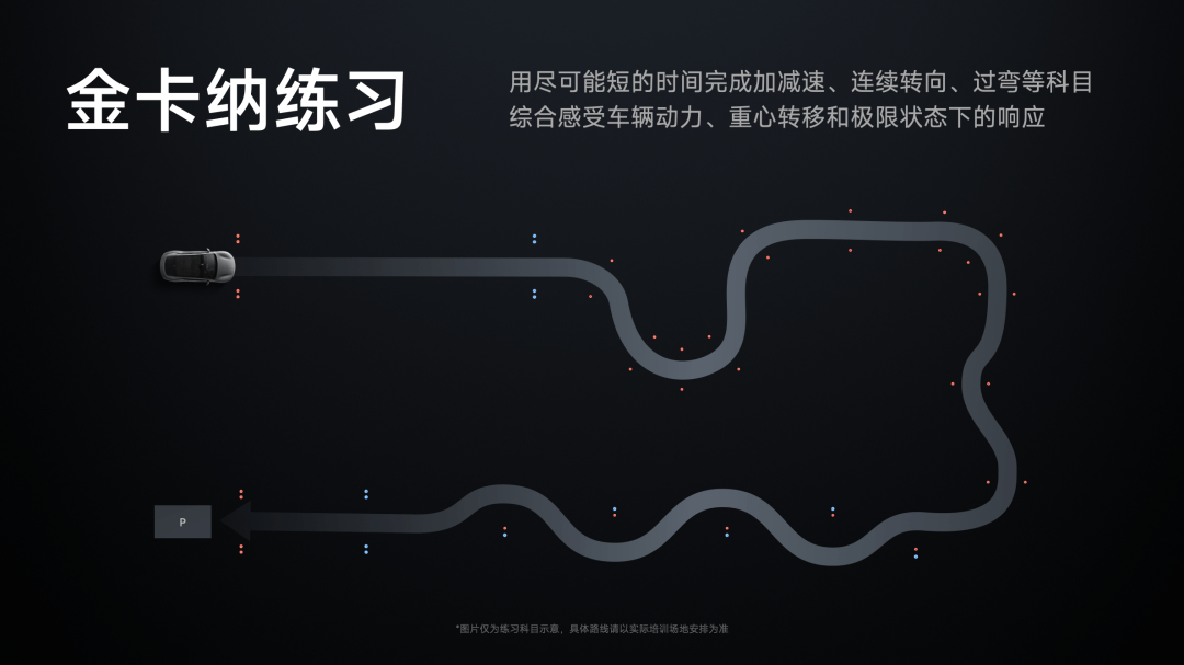 其中有金卡纳项目,它是一种小型的场地障碍赛,会在空旷的场地上布置很多锥桶,驾驶员需要提升加减速、连续转向、过弯等高级驾驶技巧才能更快跑完路线,可以让你综合地感受车辆动力、重心转移以及极限状态下的响应,在体验驾驶乐趣的同时,更主要的目的还是提高安全驾驶水平。