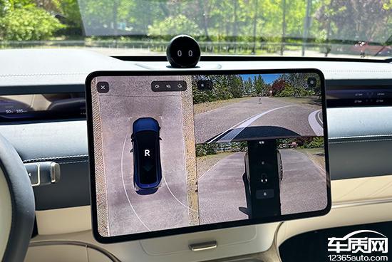 评测车配备了360度全景影像,实测整体画质清晰度不错且没有畸变。同时,画面支持多个角度查看,并配有可随动转向的倒车辅助线,帮助驾驶者更轻松地完成倒车入库等动作,实用性表现符合预期。