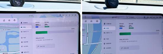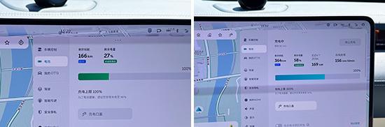 此外,对于充电效率我们也进行了测试。实测人员使用快充桩充电10分钟后(波峰用电),电量从27%充至58%,续航里程增加198km,与车辆电脑预计的用时基本吻合。