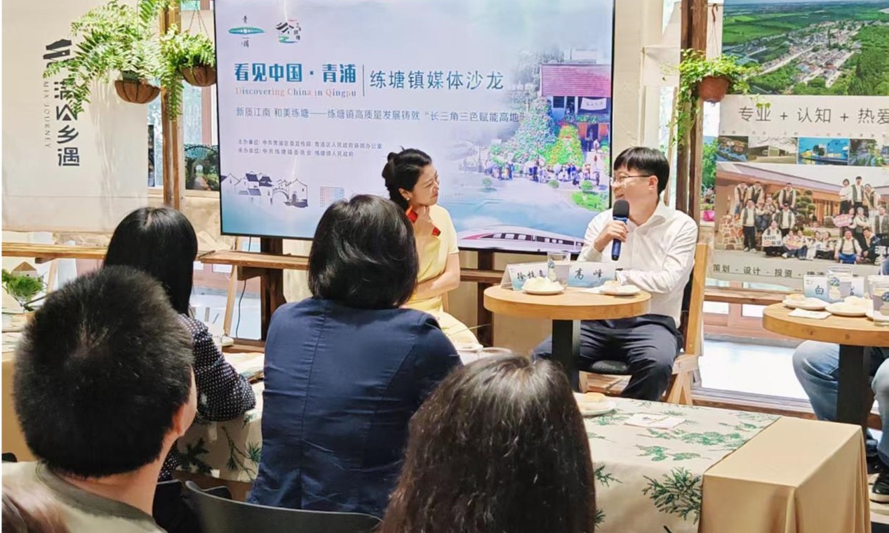 9月12日,由青浦区委宣传部、青浦区人民政府新闻办公室、上海人民广播电台、青浦区练塘镇委员会、青浦区练塘镇人民政府联合开展的“看见中国·青浦 Discovering China in Qingpu”练塘镇媒体沙龙活动在东厍村满山乡村客厅举行。练塘镇党委副书记、镇长高峰;练塘镇城市推荐官,太北村党支部书记、村委会主任张欢峰;上海满山乡遇文化旅游发展有限公司CEO白俊熠;练塘镇旅游公司副总经理、和美综合网格站长张晨,与主持人徐梓嘉,围绕“新质江南,和美练塘——练塘镇高质量发展铸就‘长三角三色赋能高地’”主题,共话练塘在六业融合与和美乡村中的实践与未来。