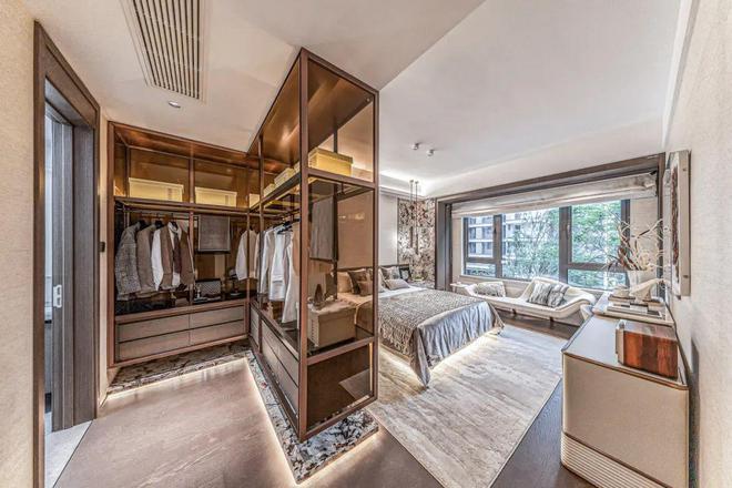 ○主卧套房升级:配备独立衣帽间+独立卫浴+全景飘窗,奢享私密生活仪式感,与社区园林景观无缝衔接。