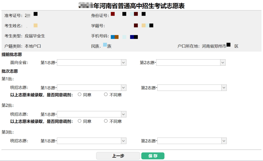 注意:只有选择了报考类型为普通高中的考生才需要在本阶段填报志愿信息!!!报考类型为普通中专和职业学校的学生本阶段不用填报志愿信息,只要有报考类型保存成功,就视为报名完成,具体中专志愿信息填报时间等待招办通知。